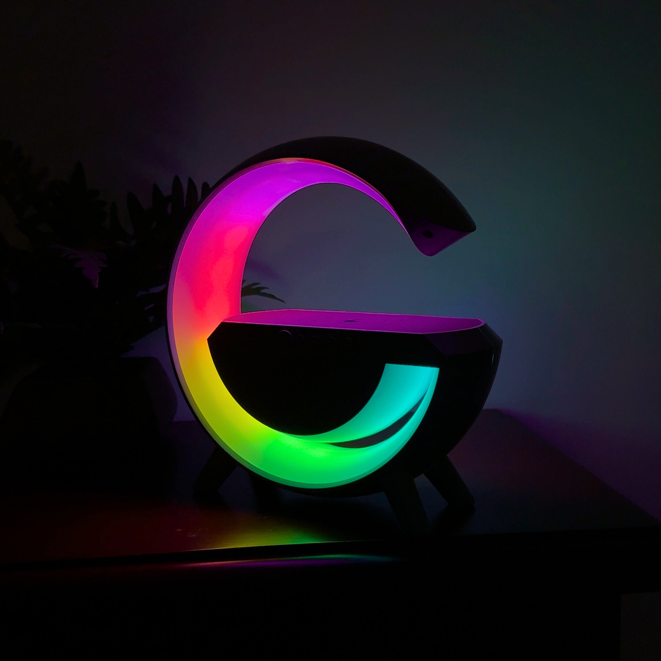 Practica, moderna, o piesa care iese in evidenta. Incarcare wireless+boxa bluetooth+lumini rgb. Exact ce ai nevoie in casa ta!